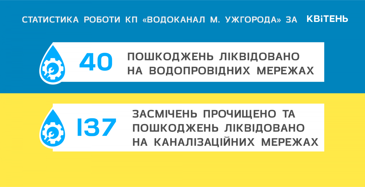 До вашої уваги статистика роботи КП «Водоканал м. Ужгород» за квітень: